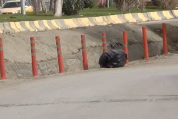 Kilis’te Devlet Hastanesi eski Acil Servis girişine yakın yere bırakılan şüpheli poşet fünye ile patlatılırken içerisinden çöp çıktı.