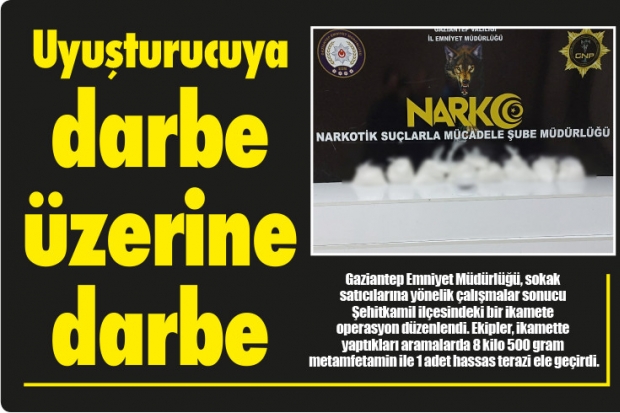 Gaziantep İl Emniyet Müdürlüğü Narkotik Şube Müdürlüğü ekipleri tarafından düzenlenen operasyonlar hız kesmiyor. Buna rağmen uyuşturucuyla mücadelede istenilen noktaya gelinemedi. Gaziantep polisi tüm çalışmalarına rağmen uyuşturucu ticaretinin önüne tam olarak geçmiş değil.