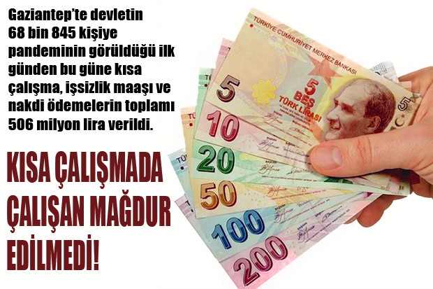 Koronavirüs salgını döneminde hem işvereni hem de işçiyi rahatlatan kısa çalışma ödeneği araştırmaları hız kesmiyor. İşyerindeki çalışma sürelerinin geçici olarak azaltılması veya durdurulması hallerinde, üç ayı aşmamak üzere sigortalılara çalışamadıkları dönem için gelir desteği sağlayan bir uygulama çerçevesinde Gaziantep’te 68 bin 845 kişiye bugüne kadar 306 milyon liralık ödeme yapıldı.