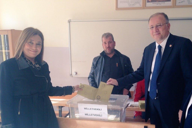 “Haydi Bismillah” diyerek oy pusulasını sandığa atan AK Parti Gaziantep Milletvekili Adayı Nejat Koçer. “Demokrasinin vazgeçilmez unsurları siyasi partiler. Siyasi partilerimiz, meydanlarda veya çalışmalarında seçim süreçlerinde söylemleri artık seçim meydanlarında kaldı. AK Parti hükümetleri zamanında Demokrasi yolunda Türkiye çok büyük mesafeler katetti ve almış olduğu bu mesafeyi bugünkü seçimde bir kez daha güçlendirecektir. Demokrasimiz bizim en büyük güç kaynağımızdır o yüzden demokrasimize sahip çıkmamız, birlik ve beraberliğimiz konusunda özveri ile çalışmaya devam etmemiz lazım.” Dedi.