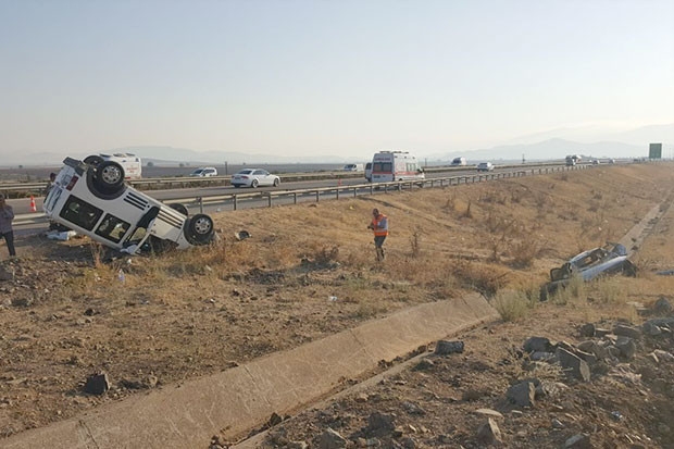 Nurdağı’nda otobanda kontrolden çıkan otomobil, karşı şeritten gelen hafif ticari araç ile kafa kafaya çarpıştı. Çarpışmanın ardından savrulan her iki araç şarampole yuvarlandı, 14 kişi yaralandı.