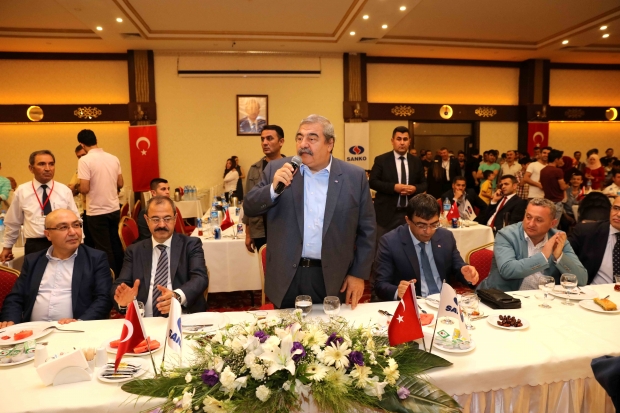 SANKO Holding Yönetim Kurulu Başkan Vekili Adil Sani Konukoğlu, Yönetim Kurulu Üyesi Sami Konukoğlu, SANKO Holding Mali Koordinatörü Tekin Alpay, Süper Film Genel Müdürü Gültekin Savaşkan, Sanko Havlu Genel Müdürü Serdar Erpamukçu, Sanko Güvenlik Genel Müdürü Ferhat Aslan ve TEKSİF Gaziantep Şube Başkanı Nuri Bay, iftar yemeği sırasında masaları dolaşarak konuklara hoş geldiniz diyerek, Ramazanlarını kutladı.