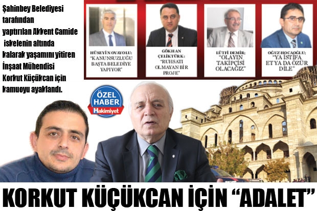 Şahinbey Belediyesi tarafından yaptırılan Akkent Camide iskelenin altında kalarak yaşamını yitiren İnşaat Mühendisi Korkut Küçükcan için kamuoyu ayaklandı. Başta TÜMMOB bileşenleri olmak üzere akademik organlar, siyasiler ve kamuoyunun önemli b ölümü İnşaat Mühendisi Korkut Küçükcan için onlarca açıklama yaptı. Açıklama yapmayan tek nokta ise Şahinbey Belediyesinin yönetimi oldu.