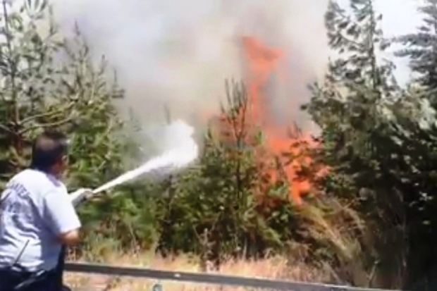 Yangında yaklaşık 1 hektarlık alan tahrip olurken, soğutma çalışmalarının devam ettiği öğrenildi.