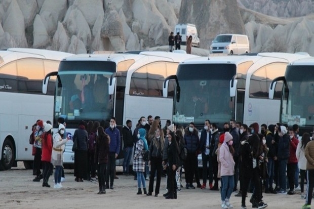 Kapadokya bölgesinde sabahın erken saatlerinde balon turlarına izlemek üzere bölgeye gelen 8 tur otobüsünde bulunan öğrenci grupları balon turlarının iptal edilmesinin ardından koronavirüs kurallarına hiçe sayarak halay çekip oyun havasında oyunlar oynaması kameralara yansıdı. Bölgeyi ziyarete gelen öğrenci gruplarının maske ve sosyal mesafe kurallarını hiçe saydıkları dikkatlerden kaçmazken tur düzenleyen firma ise ortaya çıkan manzaranın kameralara yansıması sonrasında ise müzik yayınına ara verdiği görüldü.