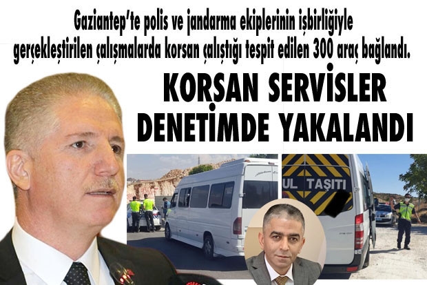 Gaziantep Valisi Davut Gül’ün talimatının ardından harekete geçen İl Emniyet Müdürlüğü’ne bağlı Trafik Tescil Şube Müdürlüğü ile Jandarma Trafik ekiplerinin ortak çalışmaları neticesinde 300 korsan servis aracı bağlandı. Trafik ekiplerinin yoğun çalışmaları neticesinde bağlanan korsan servis araçları karşısında yasalara bağlı çalışan servis araçlarının sahipleri denetimlerden oldukça memnunlar.
