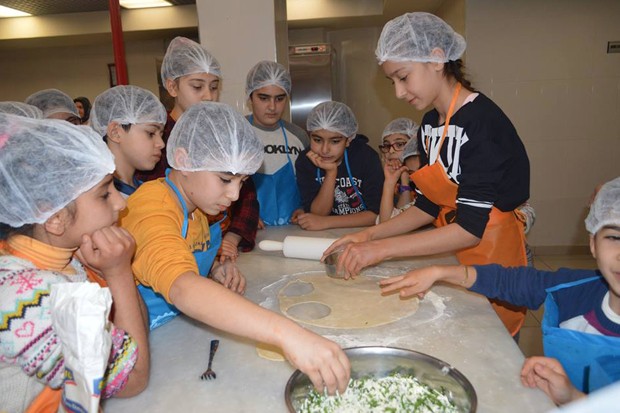 8 ile 13 yaş aralığındaki çocukların Gaziantep yemek ve tatlılarını yapmayı öğrendikleri eğitimde önce köfte yoğurmakla başlayan çocuklar Gaziantep yöresine ait bastık, öcce, omaç, pirinçli börek, cacıklı arap köftesi, börek çorbası, dolangel tatlısını yaparak eğlenceli vakit geçirdiler.
