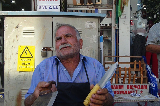 Ayakkabıcı ve bıçak ustası Hacı Türkmenoğlu, "30 yıldır bıçak bileme işi yaparım ancak şimdilerde bıçak bileme işi yarı yarıya düştü. Bunun nedeni ise berber, saatçi, fotoğrafçı, tatlıcı ve manavın bile bıçak biliyor olması. Tabi onlar bıçak bilediğini sanıyorlar ama bu yanlış. Çünkü biz bıçakçılar sıfır derece zımpara ile çalışırız. Bıçak keskin ve ağır olmalı, olmazsa kurban eziyet görür Bıçak bilemenin püf noktası sıfır zımpara olmalı, bir de özenle yapılmalı’’ diye konuştu.