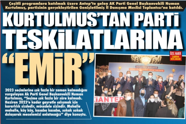 2023 seçimlerine çok fazla bir zaman kalmadığını vurgulayan Ak Parti Genel Başkanvekili Numan Kurtulmuş, “Seçime çok fazla bir süre kalmadı. Haziran 2023'e kadar gayretle çalışmak için kararlılık sizdedir, mücadele sizindir. Mahalle mahalle, köy köy, kasaba kasaba, sokak sokak dolaşarak meselemizi anlatacağız” diye konuştu.
