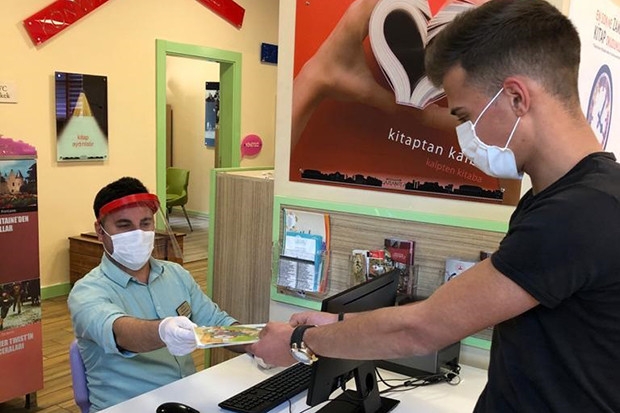Salgının ülkede kendini göstermesiyle birlikte kütüphanelerde atölye ve araştırma çalışmalarına ara verilerek kitap ödünç-iade işlemlerine devam edildi. Kitap ödünç-iade işlemlerinde kitap salonu kullanıcılara kapalı olup istenen kitap kütüphane personeli tarafından raftan alınıp okuyucuya veriliyor. Bu işlemler sırasında aynı anda en fazla 5 kullanıcı kütüphane mekânında bulunuyor. İade gelen kitaplar 3 gün ayrı bir alanda bekletilip, “Kitap Sterilizasyon” cihazlarında dezenfekte edilerek tekrar raflara yerleştiriliyor.