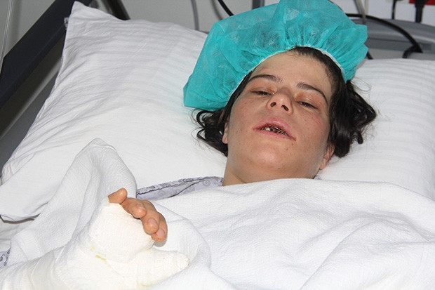"Hastamız buraya geldiğinde çok ağır bir tablo vardı. Özellikle kafasına aldığı çok fazla darbe nedeniyle hastanın şuuru kapalıydı. Bunun yanında genel vücut taraması yapıldıktan sonra kolunda ve el bileğinde kırık, vücudunun çeşitli yerlerinde doku ezilmesi ve çeşitli kırık ve çatlak boyutunda kemik hasarları vardı. En dramatik olanı da özellikle dişlerinin ve çene kemiğinin kırığı ile birlikte olan diş kaybıydı. Sonra hastamızın hikayesini öğrendiğimizde bunun maalesef kendi eşi tarafından yapıldığını, dişlerinin bir cisim yardımıyla söküldüğü acı bir tabloyla karşılaştık. Bize düşen hastayı tekrar sağlığına kavuşturmaktı. Bu şekilde anestezi ekibimizle beraber yoğun bakımda tedavi süreci başladı. İlerleyen günlerde beyin ödemi açıldı. Hastanın şuuru da daha berraklaşmaya başladı. Daha sonra el bölümünden ortopedi bölümü tarafından ameliyat edildi. Daha sonra genel durumunda toparlanmalar oldu. En son noktada diş bölgesi, çene kemikleri plastik cerrahi uzmanı tarafından ameliyat edildi. Şu an ameliyat sonrası erken dönemde genel durumu daha iyi. Bu şekilde takibi sonucunda bir süre sonra taburcu edilebilir hale gelecek. Çok kötü bir durum. Kadına karşı şiddetin çok kötü bir boyutuydu, ama biz kendi adımıza sağlık çalışanları olarak hastayı tekrar sağlığına kavuşturmuş olmaktan mutluluk duymaktayız."