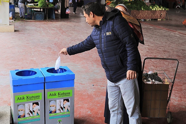 Şehitkamil Belediyesi, pazar yerinde bulunanların kullandığı maske ve eldivenlerin çöp kutularına atılmasından kaynaklanacak riski ortadan kaldırmak adına pazar yerlerine atık kutuları koydu.