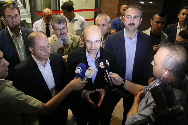 Başbakan Yardımcısı Mehmet Şimşek, beraberinde Sağlık Bakanı Recep Akdağ, AK Parti Genel Sekreteri Abdulhamit Gül ve milletvekilleriyle Gaziantep'e geldi. Başbakan Yardımcısı Şimşek, valilikte oluşturulan kriz toplantısı öncesinde havaalanında yaptığı açıklamada saldırıyı lanetleyen Şimşek, şunları söyledi: “Bu barbar ve vahşi katliamı kınıyoruz, lanetliyoruz. Olayı duyar duymaz başbakanımızla temasa geçtik. Başbakanımızın talimatı üzerine en hızlı bir şekilde geldik. Şimdi gidip yerinde inceleyeceğiz. Biz teröre boyun eğmeyeceğiz. Terörün amacı bizi korkutmak ve yıldırmak, buna izin vermeyeceğiz. Gaziantep güçlü bir şehirdir, hızla ayağa kalkacaktır. Ben saldırıda hayatını kaybeden vatandaşlarımıza Allahtan rahmet diliyorum. Yaralılarımıza da şifalar diliyorum. eşi ve benzerine az rastlanan barbarca bir katliamdır. Terörün her türlüsüyle mücadele ediyoruz. Bütün terör örgütlerine karşı millet olarak biriz ve beraberiz. Devlet olarak da son derece güçlüyüz. Mücadeleyi de en güçlü bir şekilde sürdüreceğiz. Teröre asla taviz vermeyeceğiz. Bunlar bizi yıldıramaz, Allah'ın izniyle bunu da başaracağız. Nasıl milletimiz 15 Temmuzda darbeyi engellediyse, terör örgütleriyle de mücadele en güçlü bir şekilde devam edecektir” diye konuştu.