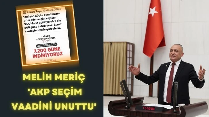 CHP Gaziantep Milletvekili Melih Meriç, AKP hükümetinin bir yıl önce BAĞ-KUR’lulara verdiği prim eşitleme sözünü tutmadığını belirterek, esnafın mağdur edildiğini ifade etti. Seçim öncesi Cumhurbaşkanı Recep Tayyip Erdoğan’ın, prim gün sayısının SSK’lılarla eşitleneceği yönündeki açıklamasını hatırlatan Meriç, “Seçim geçti, verilen sözler unutuldu” dedi.