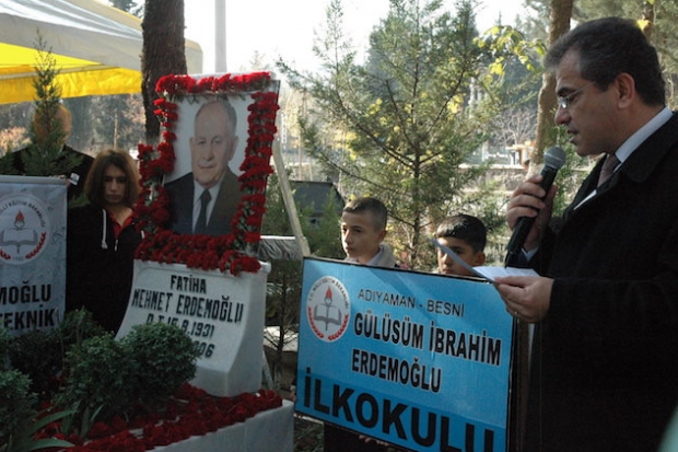 Gaziantep asri mezarlıktaki Erdemoğlu aile mezarlığında yapılan anma törenine, Erdemoğlu ailesi tarafından yaptırılan okullardan gelen öğrenciler mezarı başında saygı duruşunda bulundular. Merhum Mehmet Erdemoğlu’nun mezarı başında okunan Kuran’ı Kerim ve dualardan sonra Erdemoğlu ailesi adına bir konuşma yapan Erdemoğlu Holding Yönetim Kurulu Başkanı İbrahim Erdemoğlu Merhum Mehmet Erdemoğlu’nun gösterdiği yolda aile olarak yürüdüklerini ifade ederek şöyle dedi. “Bizlere öğrettiği yaşam ilkelerinden ve insanlara saygılı olma felsefenden asla taviz vermeden görevimizi yapmaya devam ediyoruz. Başarıya ulaşmak için hak, hukuk, adalet ilkelerine bağlı kalarak kimseyi incitmeden zararlığa uğratmadan başarılı olma ilkelerinden taviz vermeden başarıyı yakalama bilincindeyiz. Bir yıl önce yapımına başladığımız Besni ilçemizdeki Mehmet Erdemoğlu Mimarlık Fakültesinin inşaatı devam ediyor. Besni ilçesindeki bu fakülte hayalini biraz genişlettik. Besni ilçemize fakülte yetmez üniversite olsun istedik. İzinleri alabilirsek Besni ilçemize üniversite kurmak istiyoruz. Üniversitenin 5-6 fakültesi olsun istiyoruz. Gerekli izinleri alabilirsek 2-3 yıl içerisinde Besni Mehmet Erdemoğlu Üniversitesini eğitime açmak istiyoruz. Gaziantep ilimizde annemiz adına yaptıracağımız caminin temelini attık. İnşaatı devam ediyor. Yapılan cami beş bin kişilik olacak ve camide Kur-an kursu bölümleri ve taziye evi bulunacak. Yani kısaca ibadet külliyesi olacak. Besni ilçemizde kurduğumuz iplik fabrikasında 350 kişi çalışıyor. Önümüzdeki yıl kapasiteyi artırıp çalışan sayısını 700 kişiye çıkaracağız. Bizler senin çizdiğin yolda çalışmaya, ilçemize, ilimize, ülkemize ve milletimize faydalı olmaya çalışıyoruz ve çalışmaya devam edeceğiz”