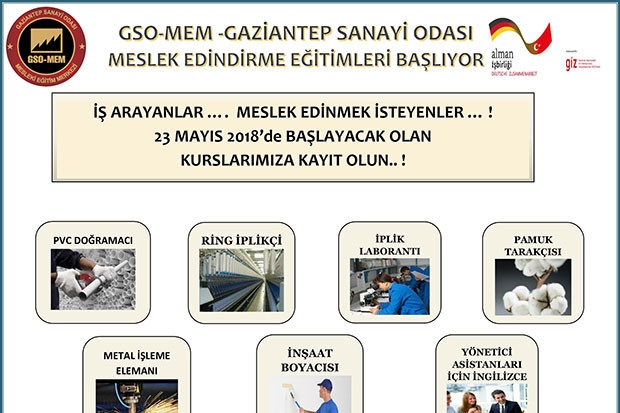 Gaziantep Sanayi Odası tarafından GSO-Mesleki Eğitim Merkezi’nde (GSO-MEM) gerçekleştirilen istihdam garantili meslek edindirme kursları devam ediyor.