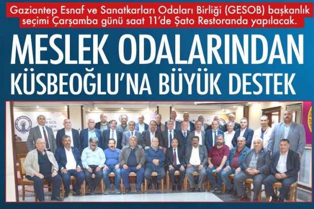 71 meslek odasında seçimlerini tamamlayan Gaziantep Esnaf ve Sanatkarları Odaları Birliği GESOB’ta başkanlık seçimi büyük heyecana sahne olacak. Olağan genel kurullarını tamamlayan GESOB’ta Başkan Adayı Ömer Küsbeoğlu’na meslek odası başkanlarından büyük destek geldi. GESOB’ta seçim öncesi düzenlenen son başkanlar kurulu toplantısında Küsbeoğlu’na büyük destek geldi.