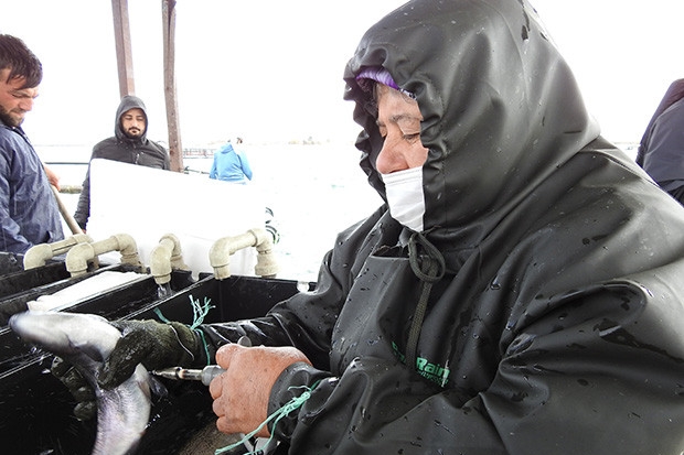 Aşılamayı severek yaptığını dile getiren aşıcı Şerife Karaoğlan’da, “Balıkları tek tek elimize alıp yapıyoruz. Her yüz tane balık aşıladığımızda bir taş atıyoruz. Kafesin sayısı zaten bellidir. Şaşırmamak için bu yöntemi kullanıyoruz. Zahmetli bir iş ama sevdiğimiz için yorulmuyoruz. Sevmeyen insan yoruluyor. Sevince zahmetli gelmiyor. Bize aşıcı diyorlar” ifadelerine yer verdi.