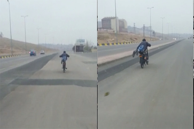Gaziantep'te yeni açılan Yeşilvadi yolunda seyir eden kimliği belirsiz sürücü, yaklaşık 120 kilometre hızla giden motosikleti, üzerinde yüzüstü yatarak kullandı. Yüzüstü uzanarak motosikleti kullanan sürücünün hızına arkasındaki motosikletli arkadaşı yetişmekte zorlandı. Sürücünün bu yolculuğu arkasından gelen motosikletli arkadaşı tarafından cep telefonu ile kayıt altına alındı.
