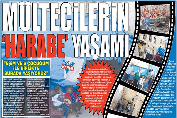 Suyabatmaz Mahallesi Memik Çıkmazı’nda yaşayan Suriyeli Mülteci aileler, yaşadıkları sıkıntıları gazetemize anlattılar. Suriye’de yaşanan iç savaştan kaçarak ülkemize sığınan Suriyeli yüzlerce mülteci aile, kentin değişik mahallerinde yaşam mücadelesi veriyorlar. Yaklaşan kış aylarına rağmen yaşamlarını harabe yapılarda geçirmek zorunda kalan mülteci aileler yardım çığlığı atıyor.