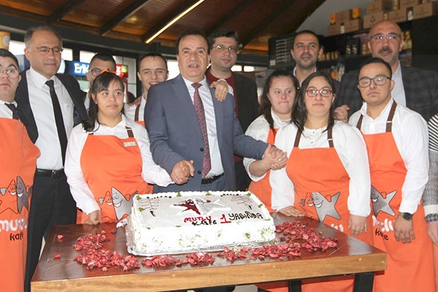 Bir yıl önce Gaziantep Büyükşehir Belediyesi Engelliler Daire Başkanlığı bünyesinde kurulan ve Down Sendromlulara hizmet vermeye başlayan Mutlu Kafe, kuruluş yıl dönümünü kutladı.