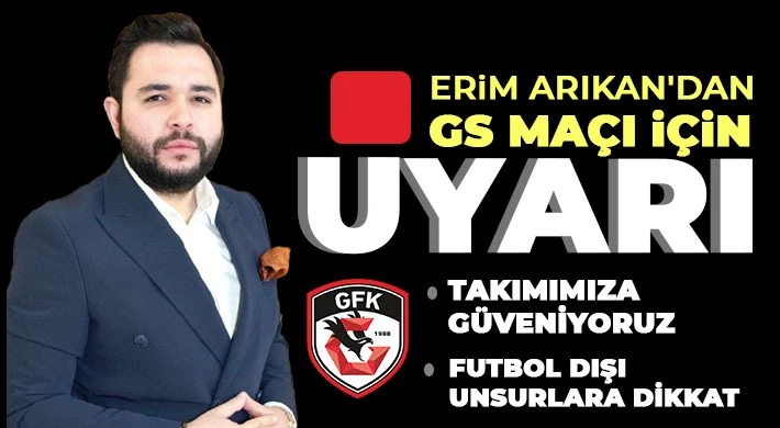 Gaziantep Futbol Yönetim Kurulu üyesi hukukçu işadamı Erim Arıkan'dan yarın oynanacak Galatasaray karşılaşması öncesinde dikkat çekici bir uyarı geldi. Gaziantep Futbol Kulübünün Gazi şehre gerekli olduğunu kaydeden siyasetçi işadamı sosyal medya hesabından yaptığı paylaşımda kritik maç için uyarılarda bulundu.