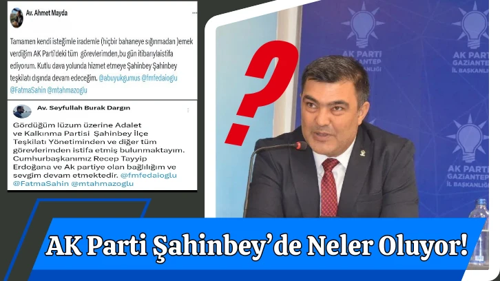 AK Parti Şahinbey İlçe Teşkilatı, son dönemde önemli gelişmelere sahne oluyor. Partinin tanınmış isimlerinden Av. Ahmet Mayda ve Av. Seyfullah Burak Dargın, partisindeki görevlerinden istifa etti.