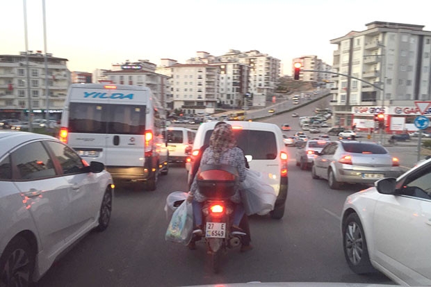 Trafikte bir süre bu şekilde ilerleyen motosiklet daha sonra gözden kayboldu.
