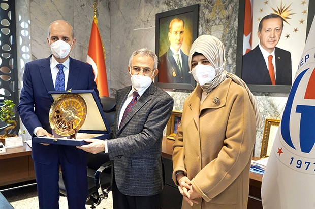 GAÜN Rektörlük makamında gerçekleşen ziyarette; AK Parti Genel Başkanvekili Numan Kurtulmuş ve eşi Sevgi Kurtulmuş’un yanı sıra GAÜN Rektörü Prof. Dr. Arif Özaydın, Ak Parti Gaziantep Milletvekilleri Nejat Koçer, Derya Bakbak, Ahmet Uzer, Mehmet Erdoğan, Müslüm Yüksel, Gaziantep Büyükşehir Belediye Başkanı Fatma Şahin, GAÜN Rektör Yardımcıları Prof. Dr. Recep Yumrutaş ve Prof. Dr. Ayşe Balat da katıldı.