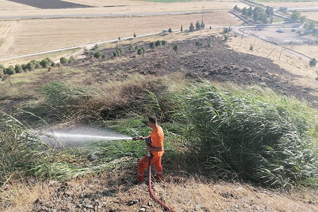 Zarar gören alana soğutma çalışması devam ediyor.
