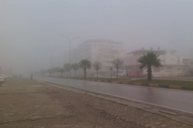 Gaziantep'in Nurdağı ilçesinde yoğun kış şartları etkisini sürdürürken, ilçedeki yağmurlu ve sisli hava yaşam şartlarını da olumsuz etkiliyor. İlçe merkezinde özellikle sis nedeniyle görüş mesafesi de 10 metreye kadar düştü.