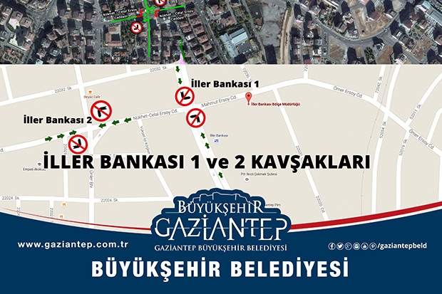 Bu bağlamda, Gaziantep Büyükşehir Belediyesi Ulaşım Koordinasyon Merkezi (UKOME) İller Bankası 1. ve 2. kavşaklarda sola dönüşleri 20 Ağustos 2016 tarihinden itibaren yasaklıyor.