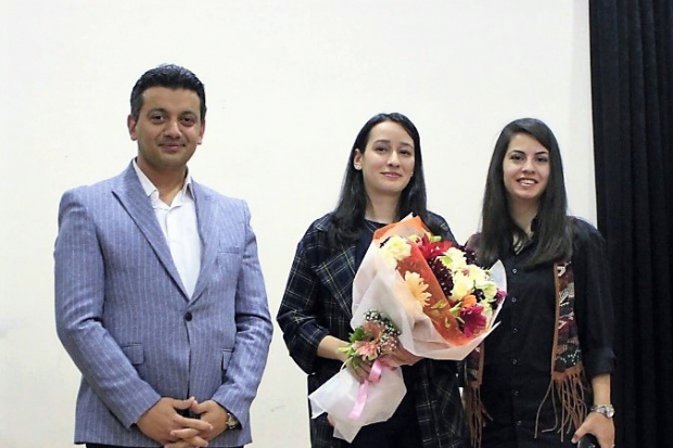 Alanında deneyimli ve profesyonel öğretim üyelerinin yanı sıra, genç ve dinamik öğretim elemanı kadrosuyla tam donanımlı meslek mensupları yetiştirdiklerine dikkat çeken Öğr. Gör. Şahin’e, sunumunu ardından Okul Müdürü Özgen Bilgin ve Rehber Öğretmen Verda Sabuncu teşekkürlerini ileterek, çiçek takdim ettiler.