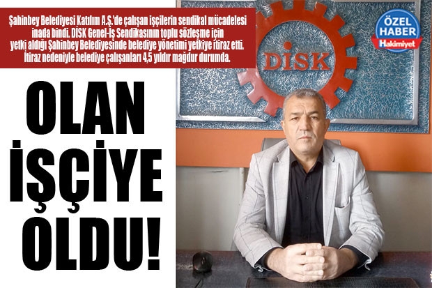 Şahinbey Belediyesi Katılım A.Ş.’de çalışan işçilerin sendikal mücadelesi inada bindi. DİSK Genel-İş Sendikasının toplu sözleşme için yetki aldığı Şahinbey Belediyesinde belediye yönetimi yetkiye itiraz etti. İtiraz nedeniyle belediye çalışanları 4,5 yıldır mağdur durumda.