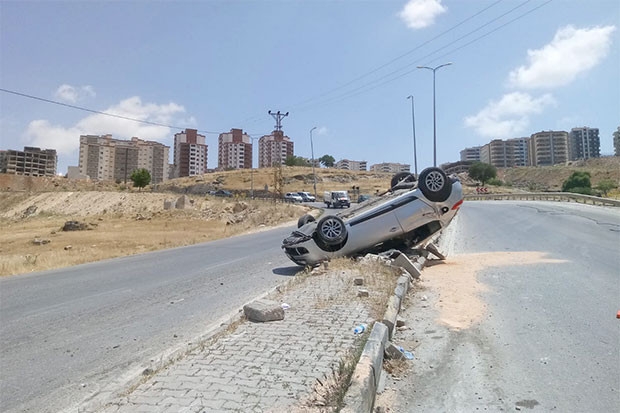 Gaziantep’te yaşanana trafik kazasında takla atan araçta sürücü yaralı olarak kurtuldu. Hüseyin İnal yönetiminde ki araç Akkent Bölgesinden Tutluk mevkiine seyir halindeyken direksiyon hakimiyetini kaybetti. Keskin virajlarıyla dikkat çeken yolda sürücü hakimiyetini kaybedince aracı takla attı. Orta refüje takılı kalan araçtan yaralı olarak kurtulan sürücü Hüseyin İnal kaldırıldığı hastanede tedavi altına alındı. Sürücü İnal’ın sağlık durumunun iyi olduğu bildirildi.