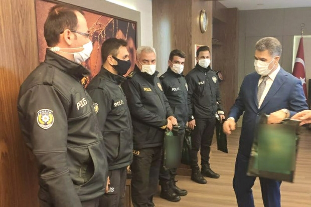 Zeybek, makamında hediyeler verdiği polislere, başarılı çalışmaları nedeniyle kutlayarak, teşekkür etti.