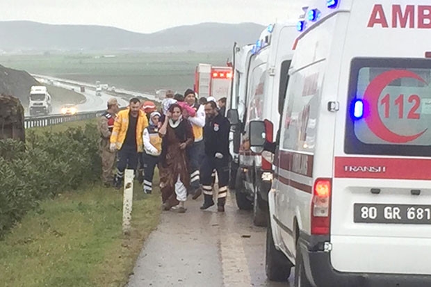 Kaza Gaziantep-Nurdağı yolunun 45. Kilometresinde meydana geldi. 48 V 2784 plakalı minibüsün sürücüsü M.F. yağış nedeniyle kayganlaşan yolda direksiyon hakimiyetini kaybedince araç refüje devrildi. Yaklaşık 35 metre sürüklenen minibüste bulunan 2’si çocuk 10 kişi yaralandı. Yaralılar olay yerine gelen itfaiye ve 112 ekipleri tarafından devrilen minibüsten çıkartıldı. Yaralılar olay yerindeki ilk müdahalelerinin ardından Gaziantep ve Nurdağı’ndaki çeşitli hastanelere kaldırıldı.