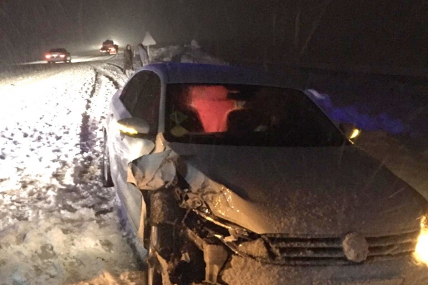 Adıyaman’ın Gölbaşı ilçesi Gaziantep karayolu üzerinde otomobil ile hafif ticari araç kar yağışı nedeniyle çarpıştı.