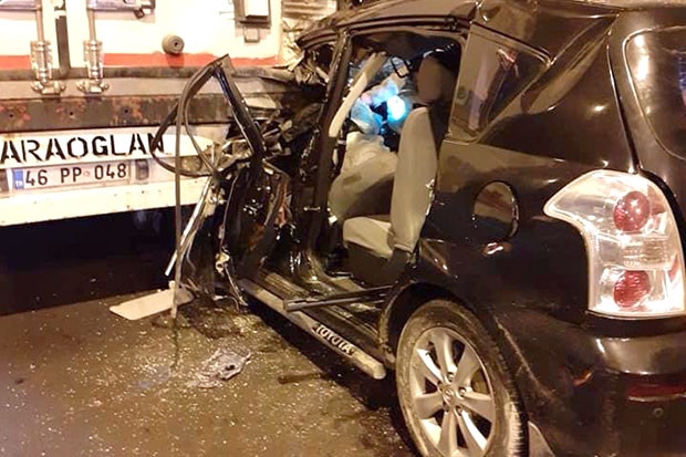 Nurdağı-Osmaniye karayolu ayran tüneli mevkiinde meydana gelen kazada M. P. (45) yönetimindeki 27 E 4968 plakalı otomobil, G.Ş (55)’in kullandığı 46 PP 048 plakalı seyir halinde ki tıra arkadan çarptı.