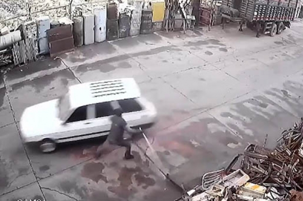 Şehitkamil, Sanayi Mahallesinde bir iş yerine giren hırsızlar maddi değeri 6 bin TL olan, tırlar da kullanılan 4 adet akaryakıt depo çerçevesi çaldı. Olayı fark eden bir görevli ise otomobille gelen hırsızları elindeki demir çubuk ile kovaladı. Otomobile binerek kaçan şahısları son anda elinden kaçıran görevli, elindeki demir çubukla son bir hamle ile araca vurabildi.