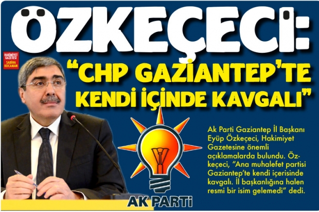 Cumhuriyet Halk Partisi Gaziantep il ve ilçe yönetimlerine geçici kurulların görevlendirildiğini ve partililerin başvurusu üzerine olağanüstü kongre yapılması için yargı sürecinin başladığını anlatan Ak Parti Gaziantep İl Başkanı Eyüp Özkeçeci; “Daha Ana Muhalefet Partisinin Gaziantep’te resmi İl Başkanı yok. Benden sonra kaç tane il başkanı değiştirdiler bilemiyorum. Atanmış bir il başkanı var, kongre ile gelmiş bir il başkanı yok” dedi.