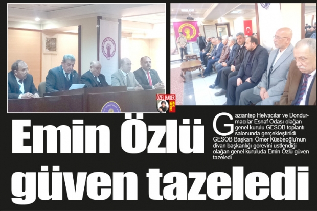 Gaziantep Esnaf ve Sanatkarlar Odaları Birliği toplantı salonunda gerçekleştirilen kongreye katılım yüksek oldu. GESOB'a bağlı esnaf odaları başkan ve yönetimlerinin katıldığı olağan genel kurula MHP Gaziantep eski Milletvekillerinden Mehmet Ay'da katıldı. Yapılan olağan genel kurulun ardından güven tazeleyen Emin Özlü, yeni dönemde daha yoğun çalışmalara imza atacaklarını kaydetti.