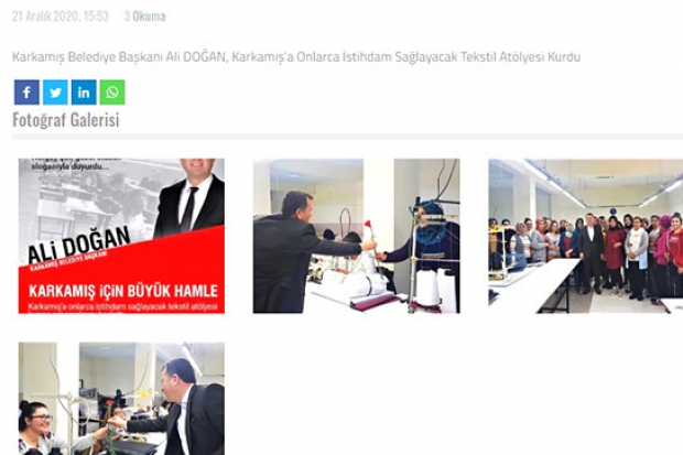 Karkamış Belediye Başkanı Ali Doğan, ilçe belediyesi tarafından kurulan tekstil atölyesinde onlarca istihdamın sağlanacağını duyurdu. Doğan’ın bu duyurusu memnuniyetle karşılandı ama fotoğrafa yansıyan görüntü ise koronavirüse açık davetiye çıkartıyordu. Fotoğrafa sosyal mesafesiz ve maskesiz yansıyan bu görüntü tepkilere neden oldu.