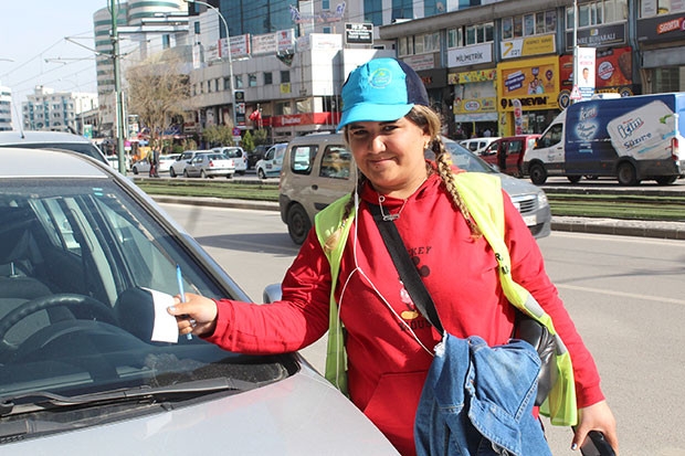 Göreve başlayan parkomat kadınlar ise hem aile bütçelerine katkı sunmanın sevincini yaşıyor.
