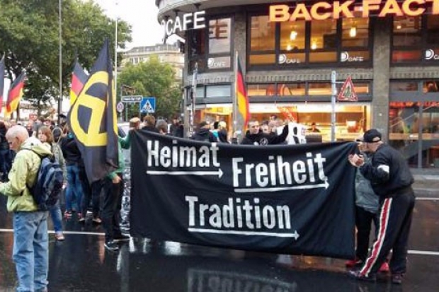 "Sabrımız taştı“ anlamına gelen sloganlar da atan grup, "Afganistan, Irak ve Suriye'den gelen mülteciler, ülkemize hastalık getiriyorlar" diye de seslendi. "Almanya, Birleşmiş Milletler'den çıkmalı“ şeklinde dövizler açan grup, Avrupa Birliği'nin bayrağının üzerine de siyah boya ile çarpı işareti yaptığı gözlendi.