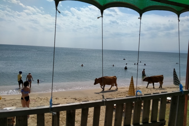 Sinop’ta çevrede hayvancılıkla uğraşan vatandaşların otlamak üzere dışarı saldığı inekler meralarda doyduktan sonra sahilde keyif yaptı. Ordu Köyü Denizler mevkisi sahiline giren inekler burada turistlerle güneşlendi. Bunaltıcı sıcaklardan kaçan insanların tercih ettiği plajın misafirleri bu kez inekler oldu. Sahilde inekleri görenler dönüp bir kere daha baktı. İnekler sahilde kimi zaman yatarak ‘güneşlenirken’, kimi zamanda kıyı şeridi boyunca dalga sesleri arasında yürümeye devam etti. O anlar vatandaşlarca kaydedildi.