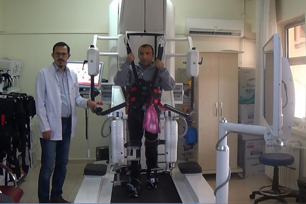 Hastanın kas, kemik ve eklemlerinden beyine sürekli besleme sağlayarak, yürüme yeteneğinin tekrar kazanımı ve geliştirilmesi için kullanılan robot destekli yürüyüş rehabilitasyonu olduğunu vurgulayan TÜRK, "Özellikle inme, omurilik yaralanması, parkinson ve serebral palsi hastalarında yapılan çalışmalarda yüksek başarı sağlanmıştır. Bu cihaz ile hastaların tedavi süreci hızlandırılmış olmakta ve aynı zamanda hastaya uygulanan fizyoterapinin süresi de önemli ölçüde azalmaktadır. Cihaz, daha önceden yürüyen ve felç geçirmiş hastaların tekrar yürümesini kolaylaştırmaktadır" diye konuştu.