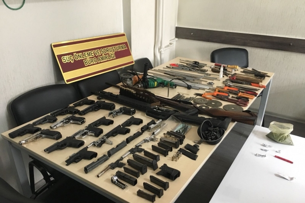 Edinilen bilgiye göre, Şehitkamil İlçe Emniyet Müdürlüğüne bağlı Suç Önleme ve Soruşturma Büro Amirliği ekipleri, Mevlana Mahallesindeki bir adreste ruhsatsız silah üretimi yapıldığını tespit etti. İstihbarat doğrultusunda adrese operasyon düzenleyen ekipler, ikamet sahibi M.Ç.’yi gözaltına aldı. Gözaltına alınan şahıs sağlık kontrolünün ardından sevk edildiği mahkemece tutuklanarak cezaevine gönderildi. Ayrıca adreste yapılan aramada, 5 adet ruhsatsız tabanca, 1 adet kurusıkı tabanca, 2 adet av tüfeği, 8 adet tabanca gövdesi, 6 adet sürgü, 3 adet namlu, 11 adet değişik ebatlarda şarjör,6 adet bilye atar, 3 adet kurusıkı ve 1 adet tabanca fişeği, 3 adet kabze, 19 adet namlu açmaya yarayan matkap ucu, 20 adet namlu yapımında kullanılan metal boru, çok sayıda tabanca yapımında kullanılan malzeme, 5 gram metanfetamin ile 300 gram toz esrar ele geçirildi.