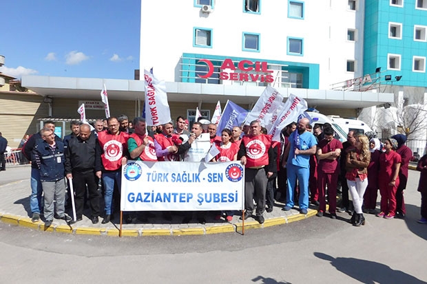 Türk Sağlık-Sen Gaziantep Şubesi, Şehitkamil Devlet Hastanesinde görev yapan bir Hemşirenin görevi başında darp edilmesini yaptığı basın açıklamayla protesto etti. Türk Sağlık-Sen Şube Başkanı Kemal Kazak, hastane önünde yaptığı açıklamada şu ifadelere yer verdi: