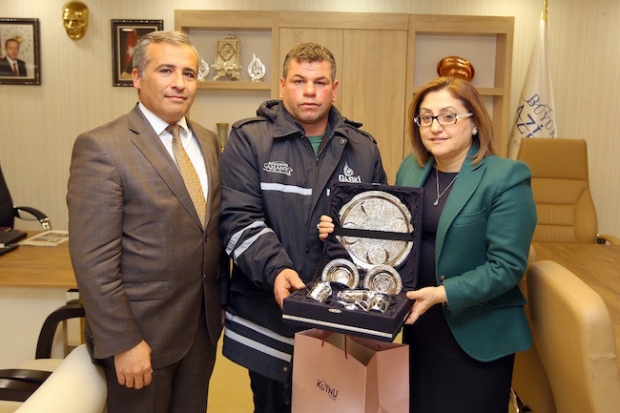 Videoyu izleyen Fatma Şahin, Muharrem Dana’yı ayın personeli seçerek, makamında kabul etti.
